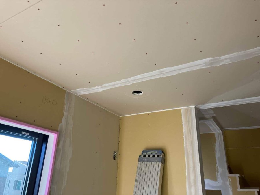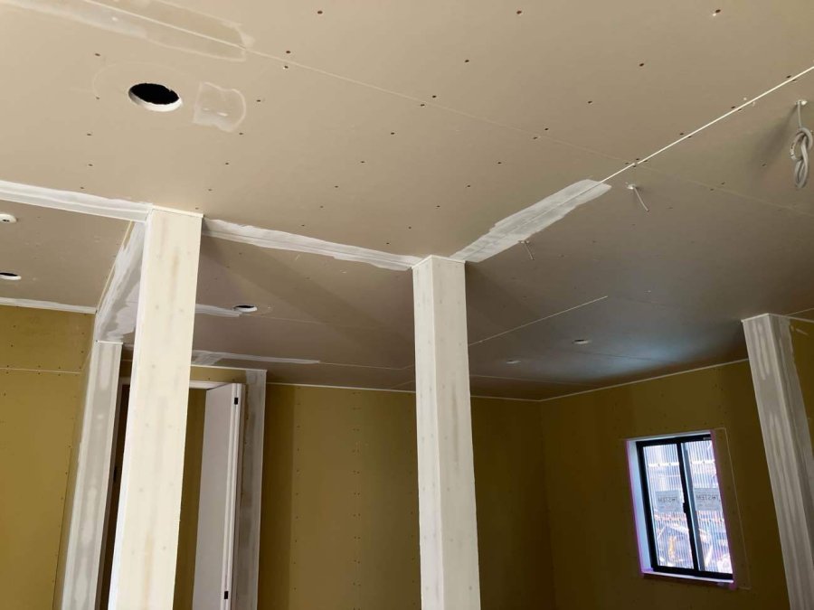 大工さんが張ったボードのつなぎ目やビスなどの凹凸をきれいに平にしてしまう。