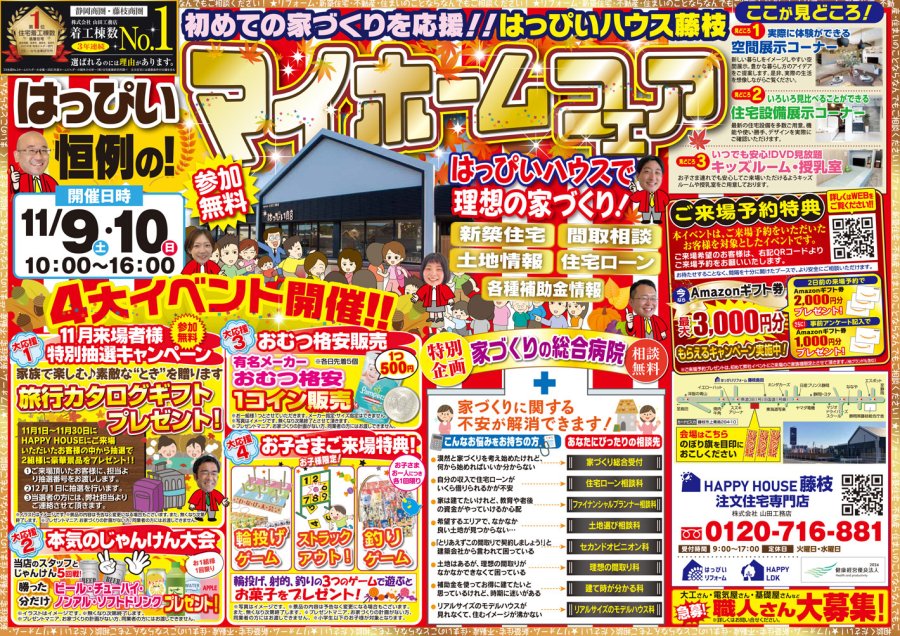 これからおうちづくりを始める皆様、ぜひ一度お気軽に、はっぴいハウスにお越しください。