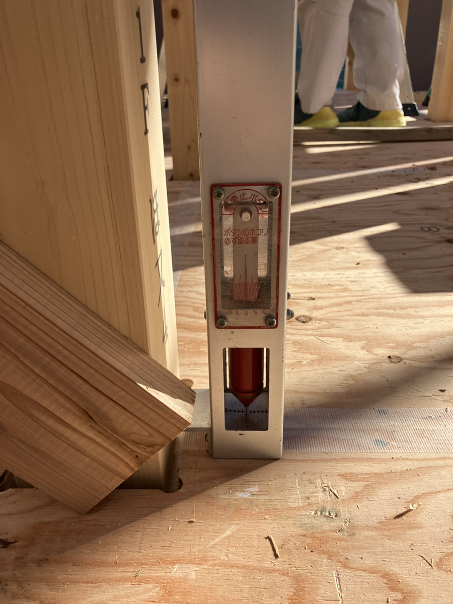 お家の柱をどのように垂直にしているかご存知でしょうか。