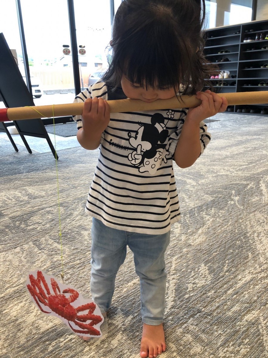 ブルーシートの海(建築会社っぽい!)にたくさん浮かんだお魚を一人20匹は釣って大満足してくれてます!!