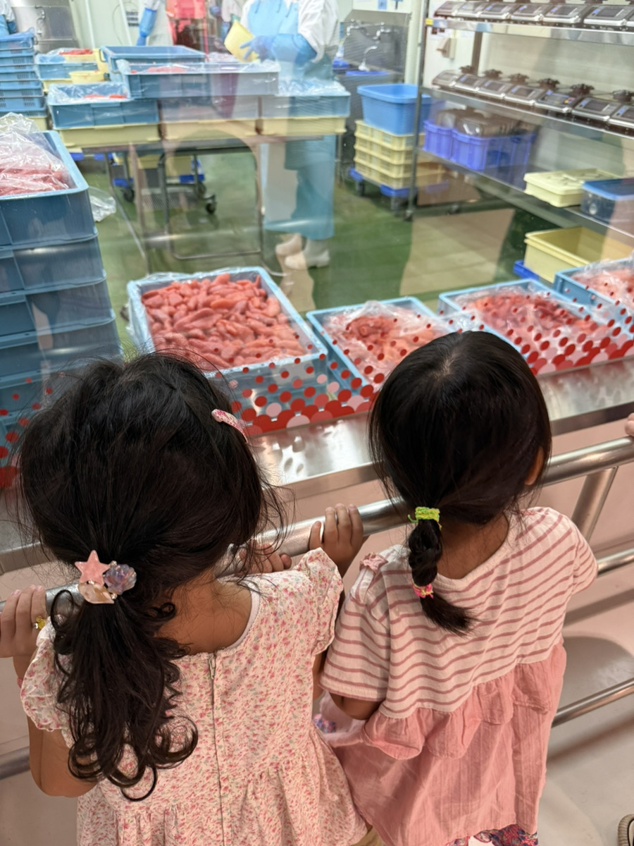 あいにくの大雨で足湯には入れませんでしたが、子ども達は工場見学をしたり、