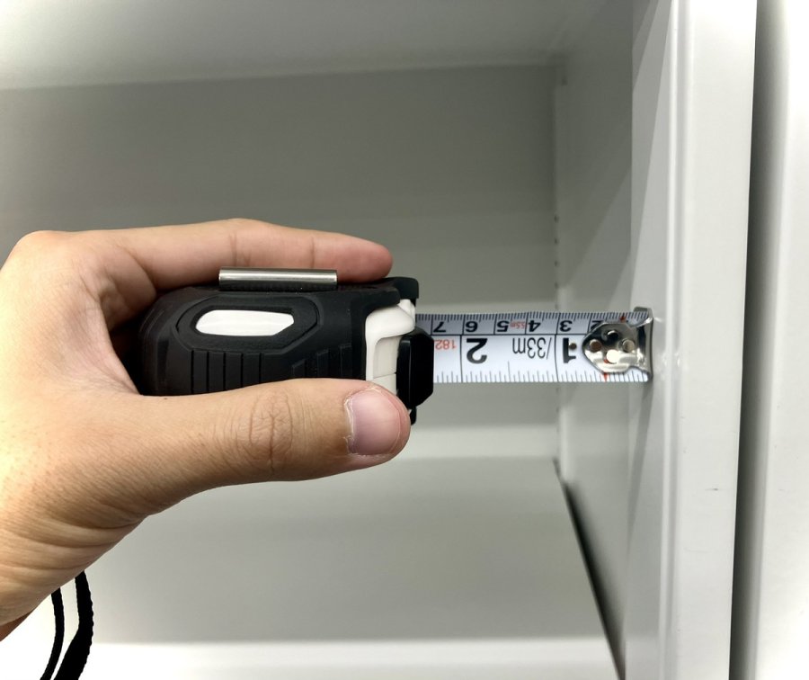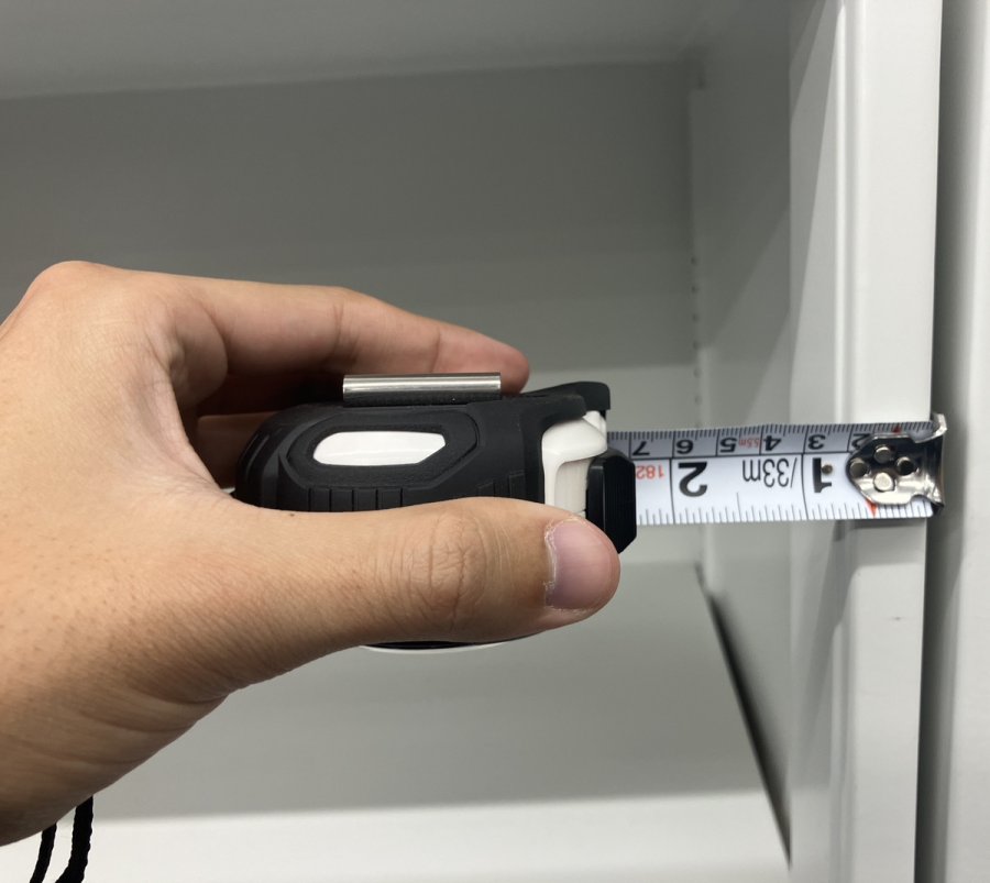 コンベックスは物に引っかけて測る場合・物に押し当てて測る場合の両方で使います。