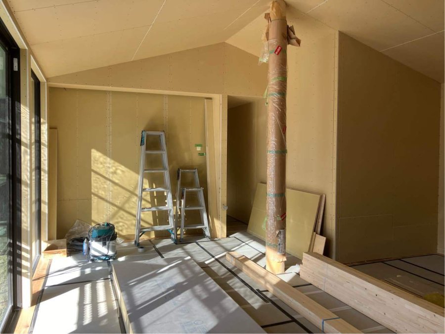 12月に建前を終えて、現在は、木工事、外壁工事を進めております。
