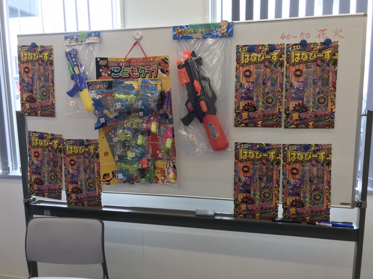 夏祭りらしくスーパーボールすくいや、花火と水鉄砲が景品のくじ引きなどのイベントがあり大盛り上がりでした。
