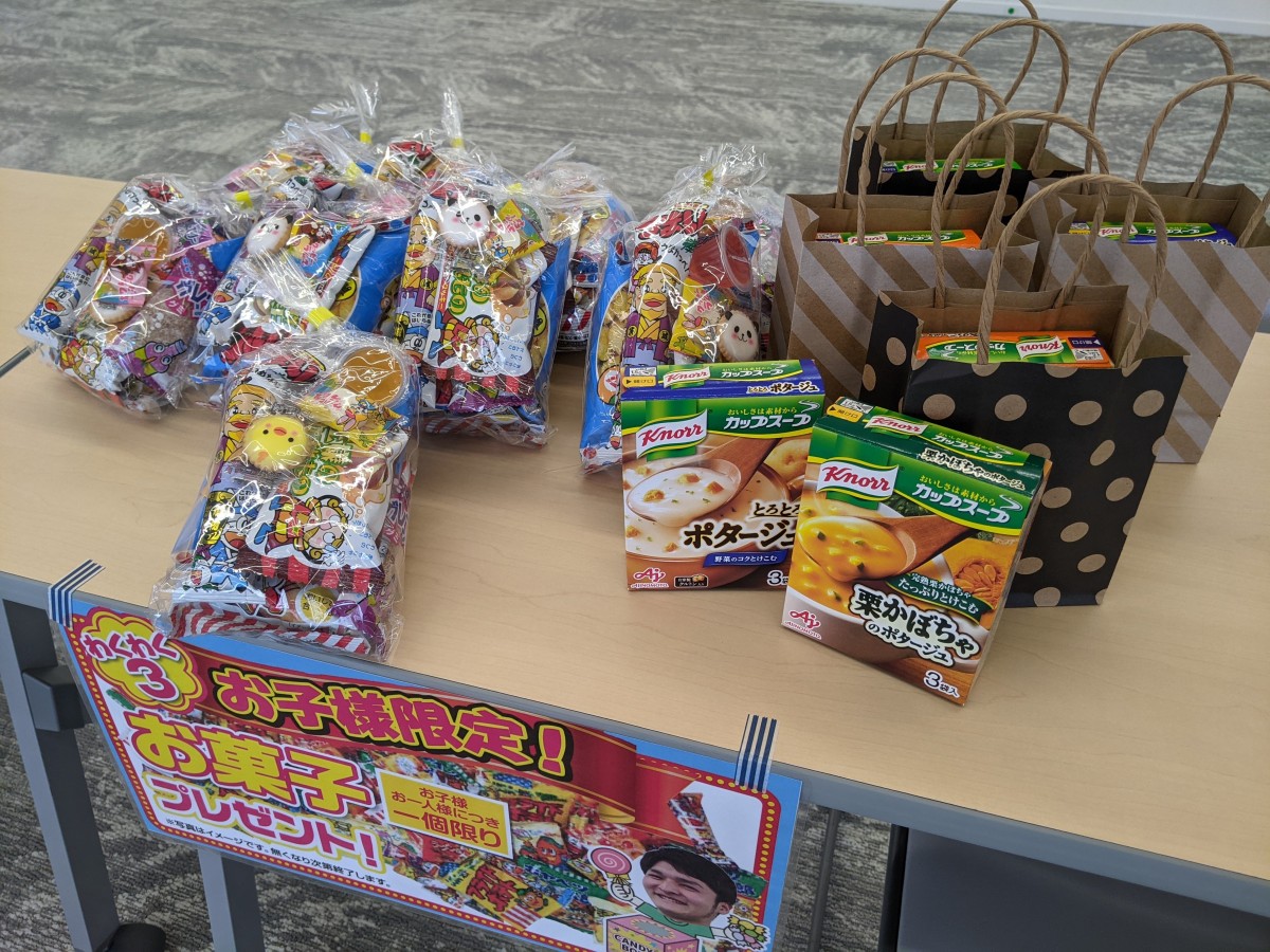 ⑤その他にもお子様にはお菓子詰め合わせ、奥さまにはあったか~いスープもありますよ(^^♪