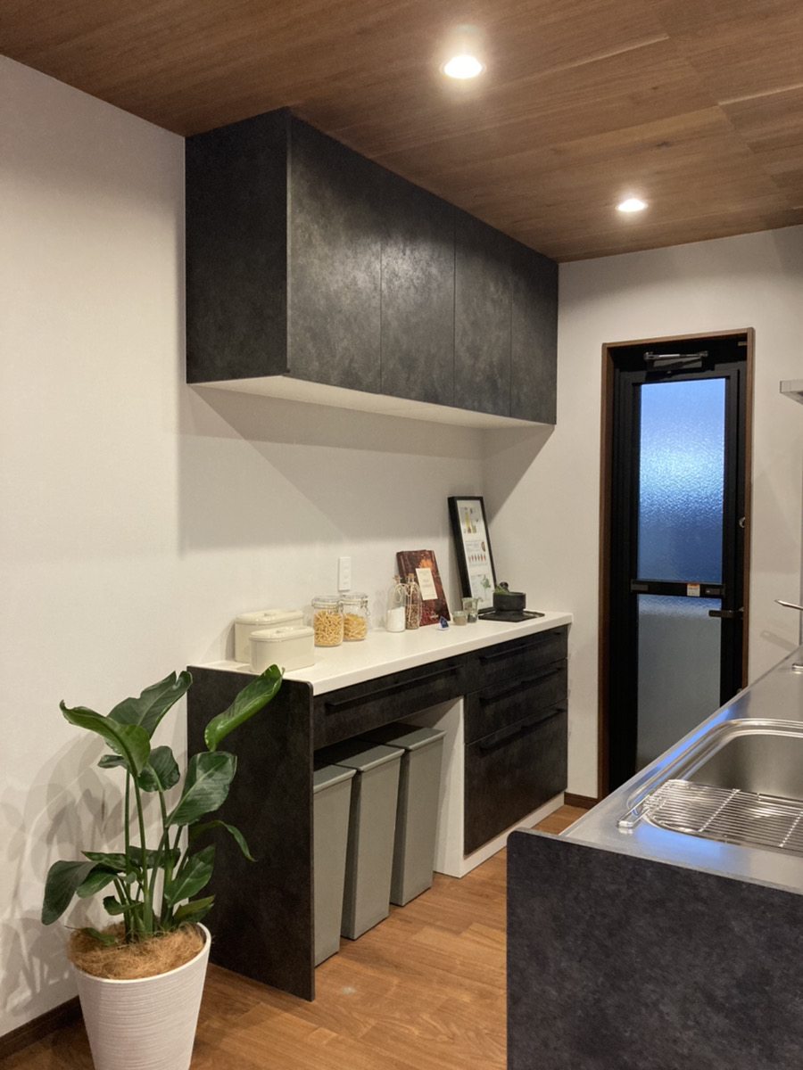 扉の色はウォールナットの落ち着いた雰囲気に合う「ロッシュチャコール」です。