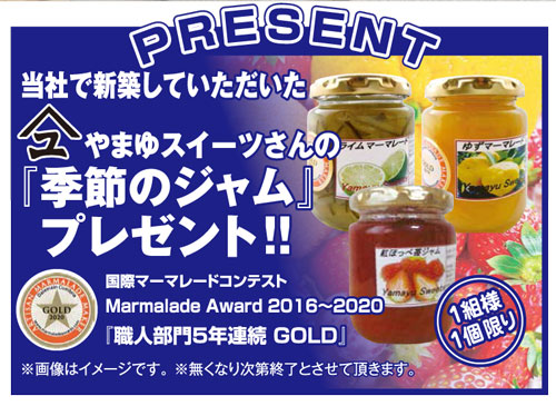 来場特典として『四季のジャム工房 やまゆスイーツ』さんの“季節のジャム”をご用意しました。