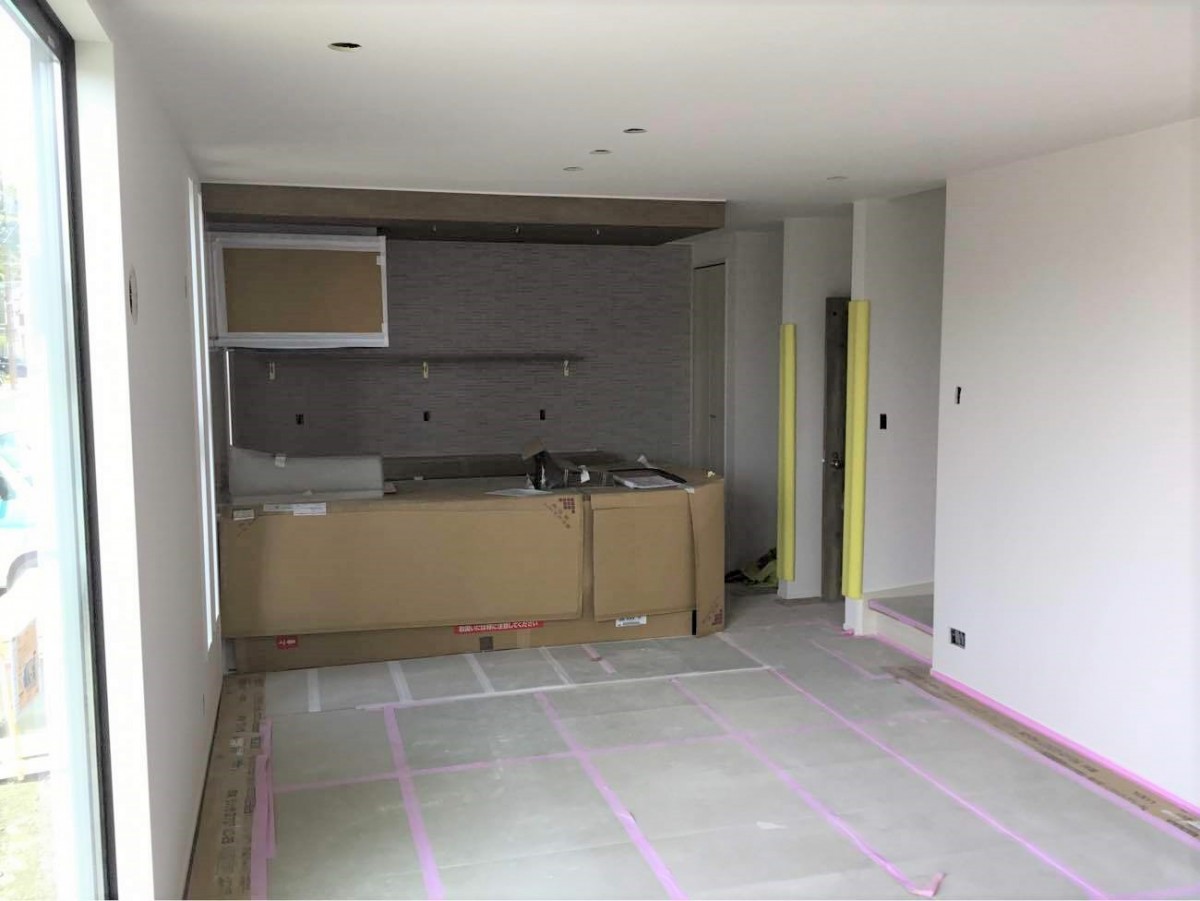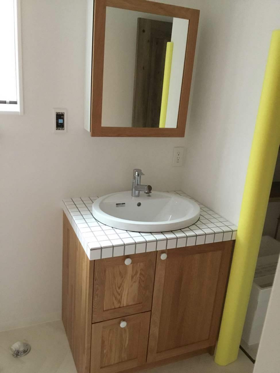 先日、現在建築中のリーヴァ岸町モデルハウスの内装工事がおわり、ついにキッチンや洗面台がつきました。