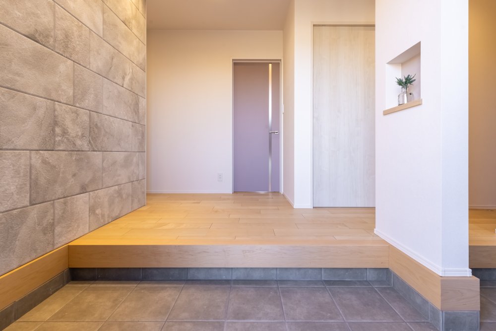 壁のアクセントタイルも、ホールをグッとお洒落に引き立てています。
