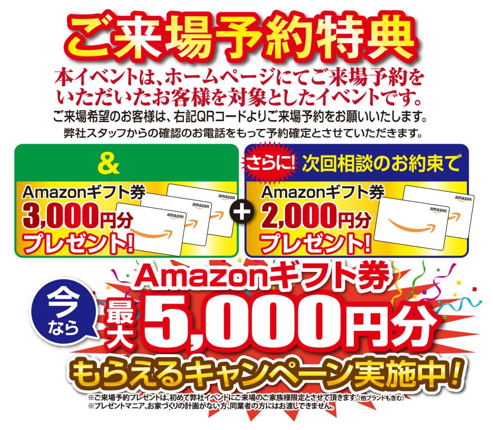 ①2日前までの来場予約+事前アンケート記入でAmazonギフト券3,000円分
