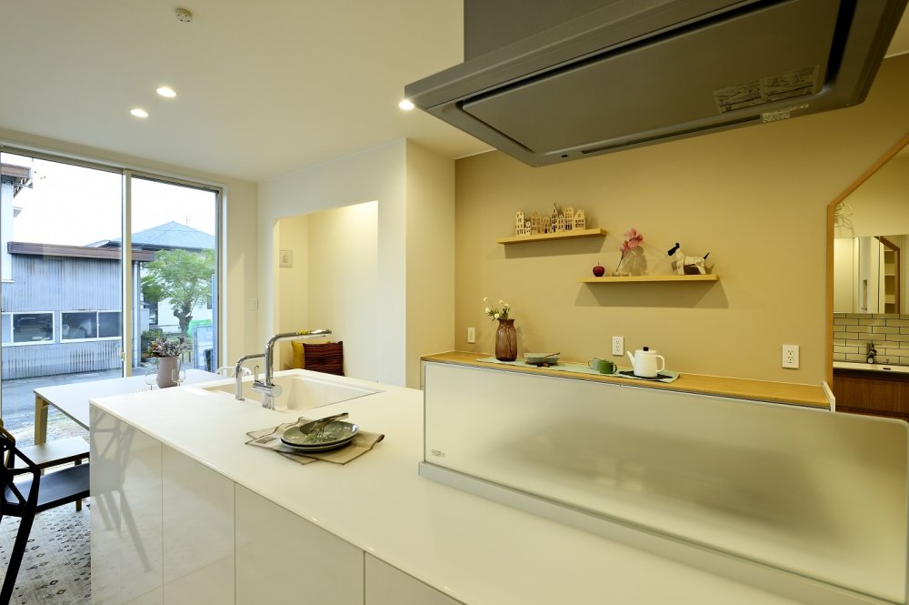 ③白を基調とした、フロントオープン食洗器のついた家事楽キッチン