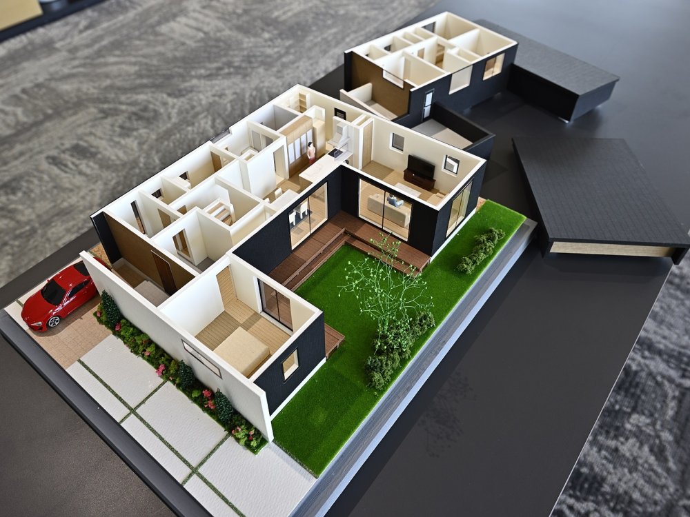 モデルハウス模型には建物価格や住宅設備費コミコミの価格表記があるので、