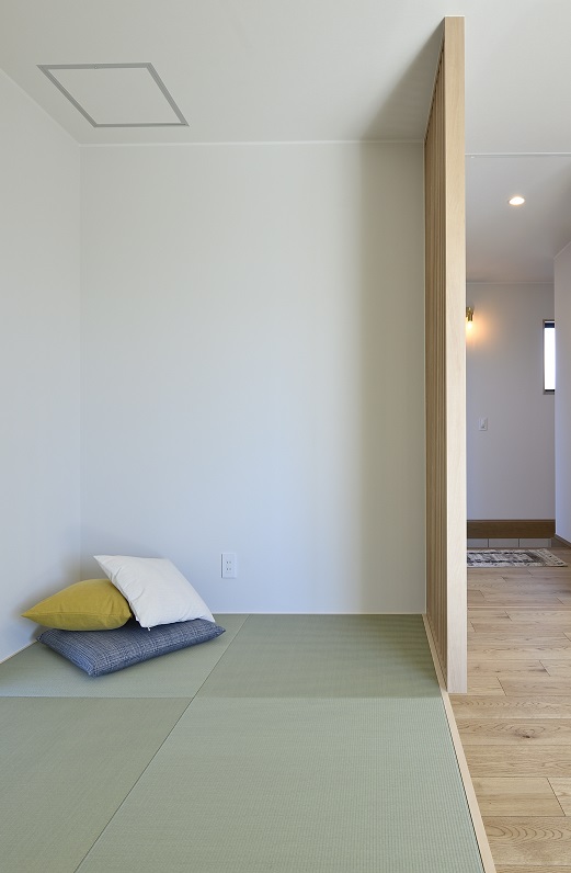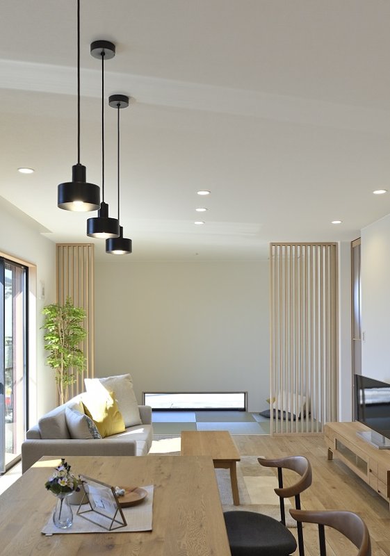 開放感を保ちながら、リビングとの空間をゆるやかに仕切れる所が素敵です。