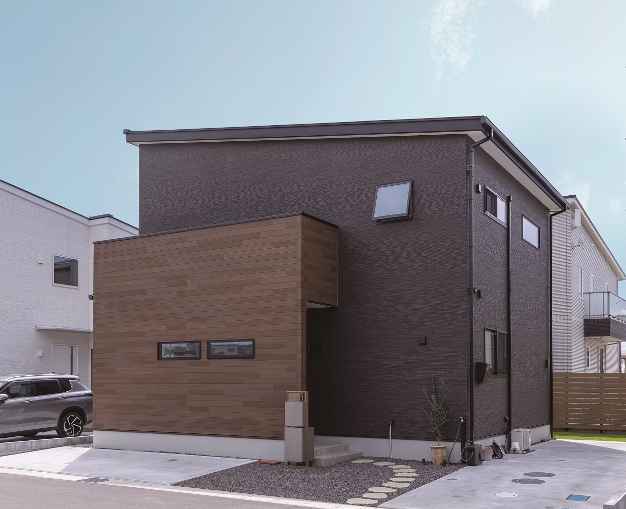 2色のサイディングを組み合わせたシンプルな外観ですが、一回目のデザイン提案で、二人揃って「コレ!」と即決しました!