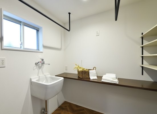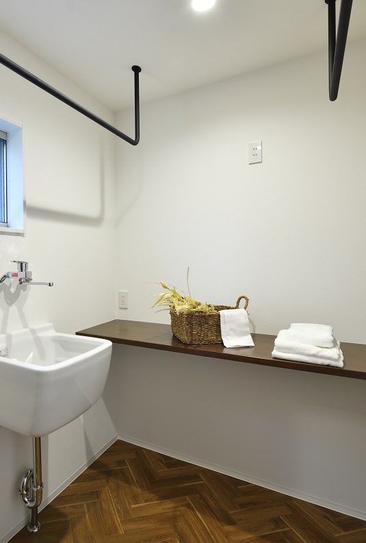 ランドリールーム、洗面所、脱衣室の動線は室内で洗濯物を完結させるのに特化した動線です。