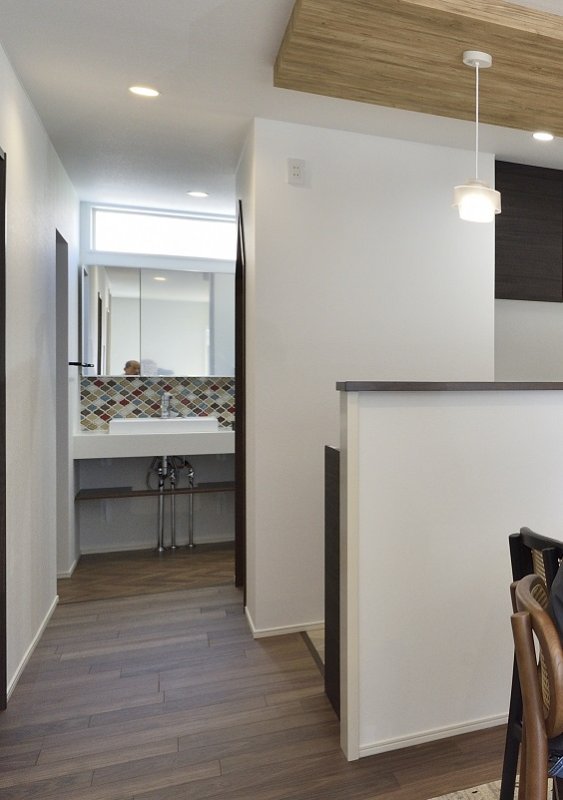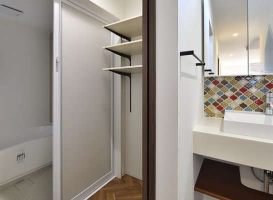 脱衣室は仕切ると狭くなるかなとも思ったんですが、家族が脱衣室を使っていても気にせず洗面台を使えるので、仕切って良かったです。 -