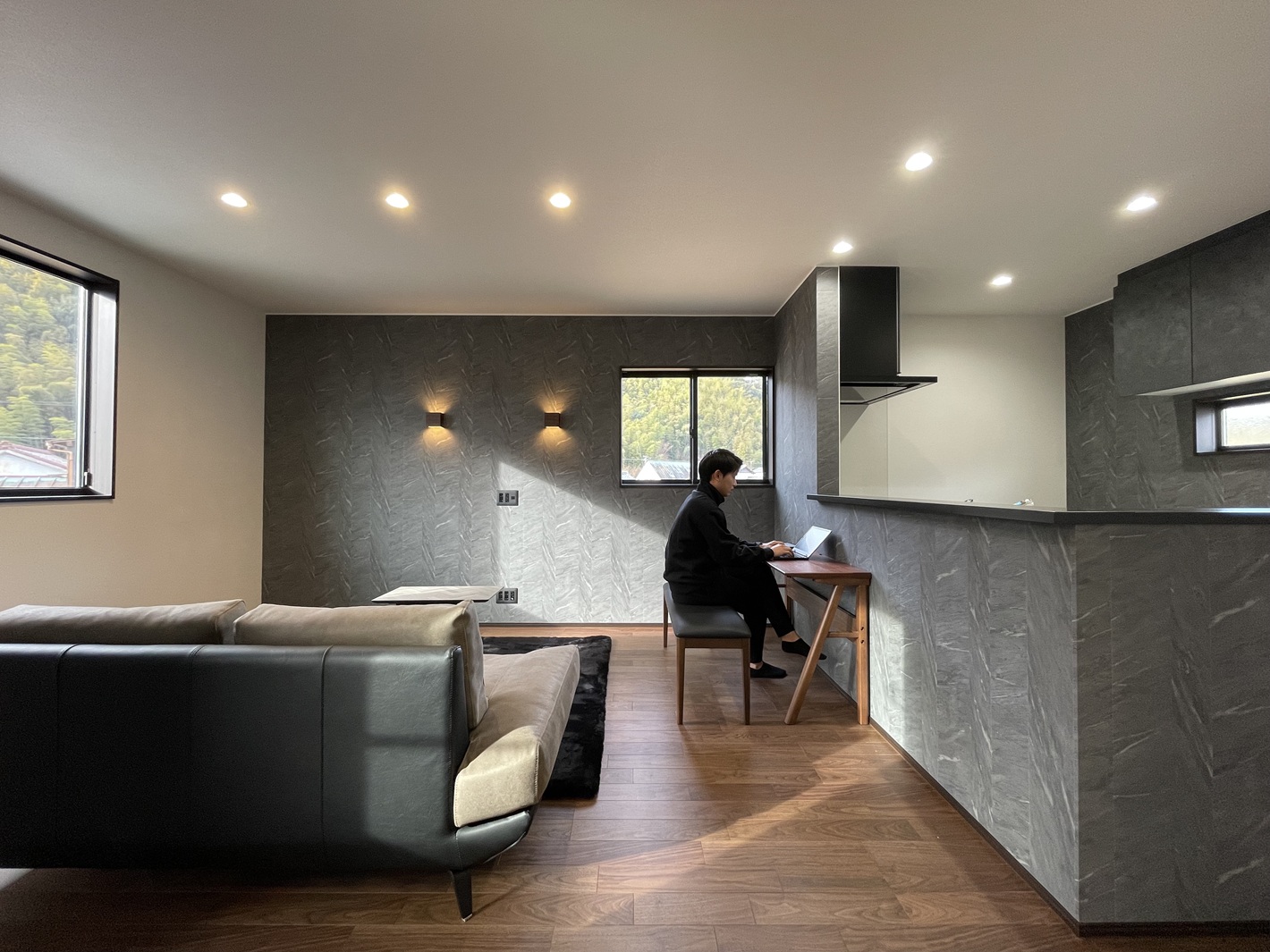壁や床の素材感もこだわったので、深みがあって、大人のくつろぎ空間にぴったりなんです。