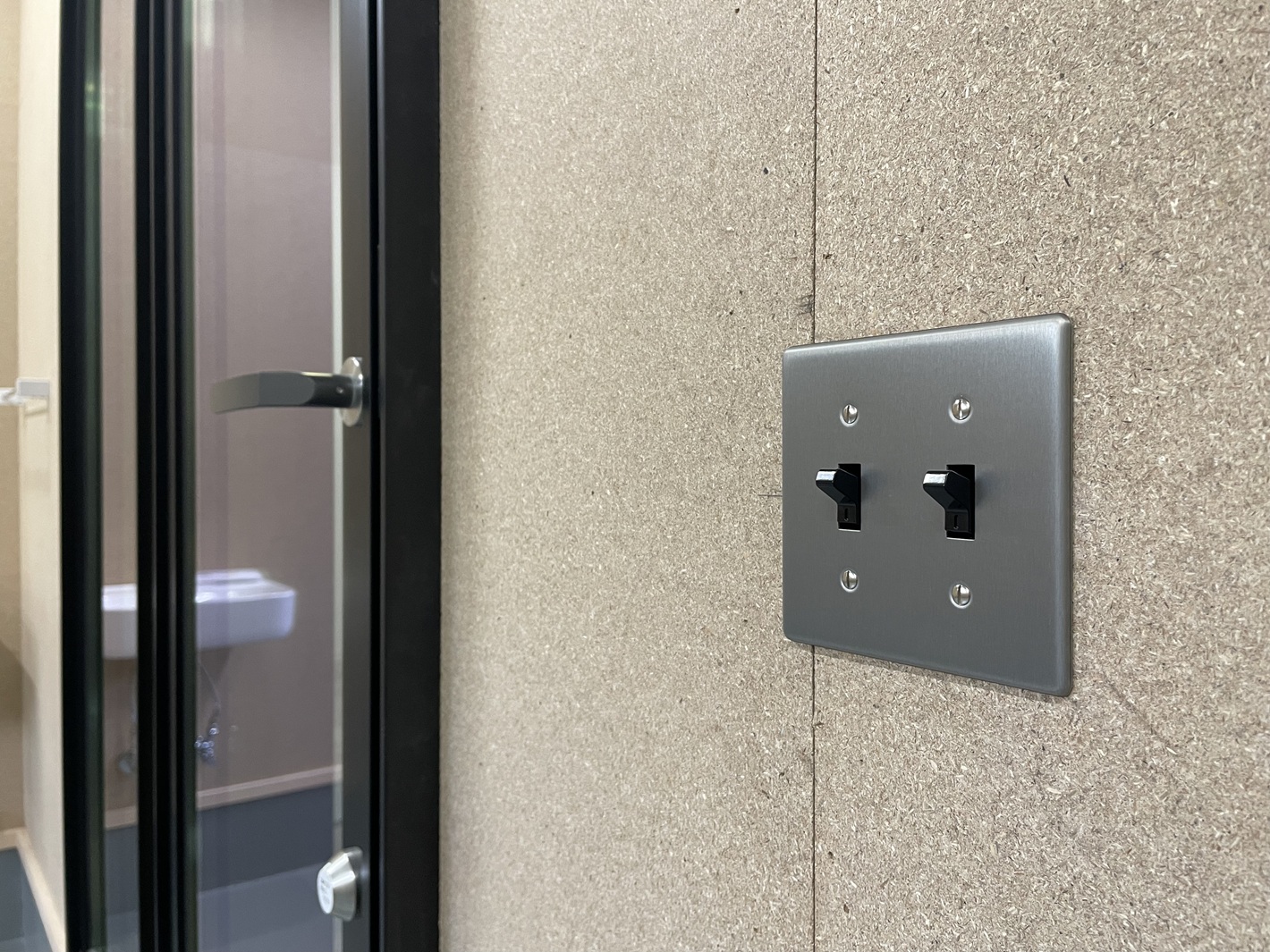 DIYで棚をつけたり、色々とアレンジしたかったので、壁の全面をパーティクルボードにしてもらったんです。