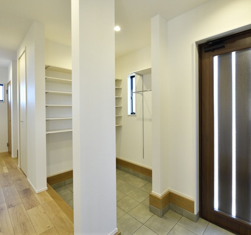 玄関に入った瞬間広がる明るい空間と抜けた先に待っている家事のしやすい間取り。