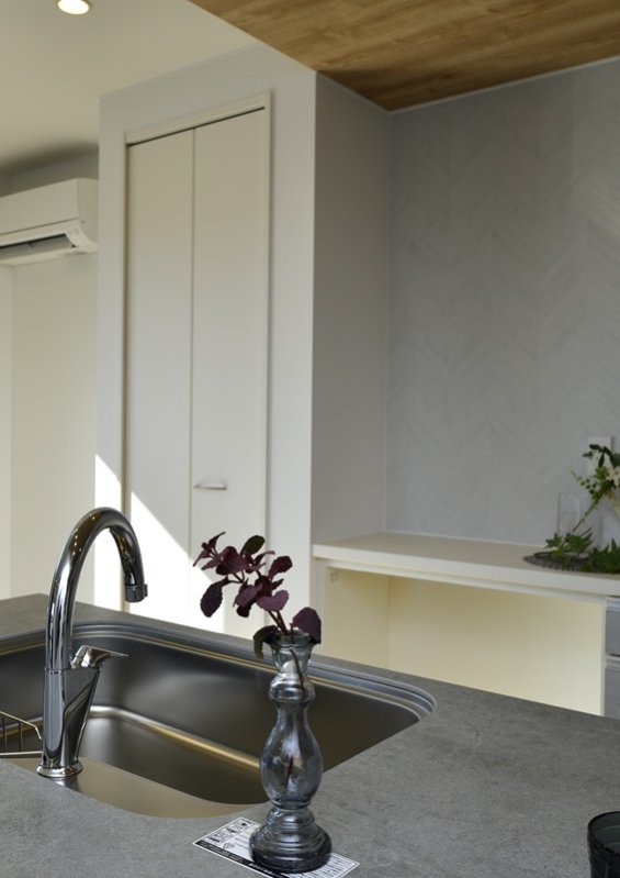クロスだけでなく、キッチンや扉の色も悩んだ末に選んだものですが、「これにして良かった」と思える仕上がりになりました。 -