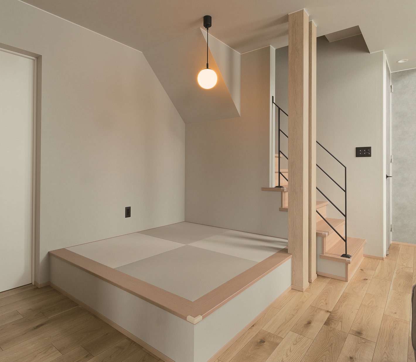 デザイン的にも役割的にも、LDKに馴染むように計画された小上がりの畳スペース。