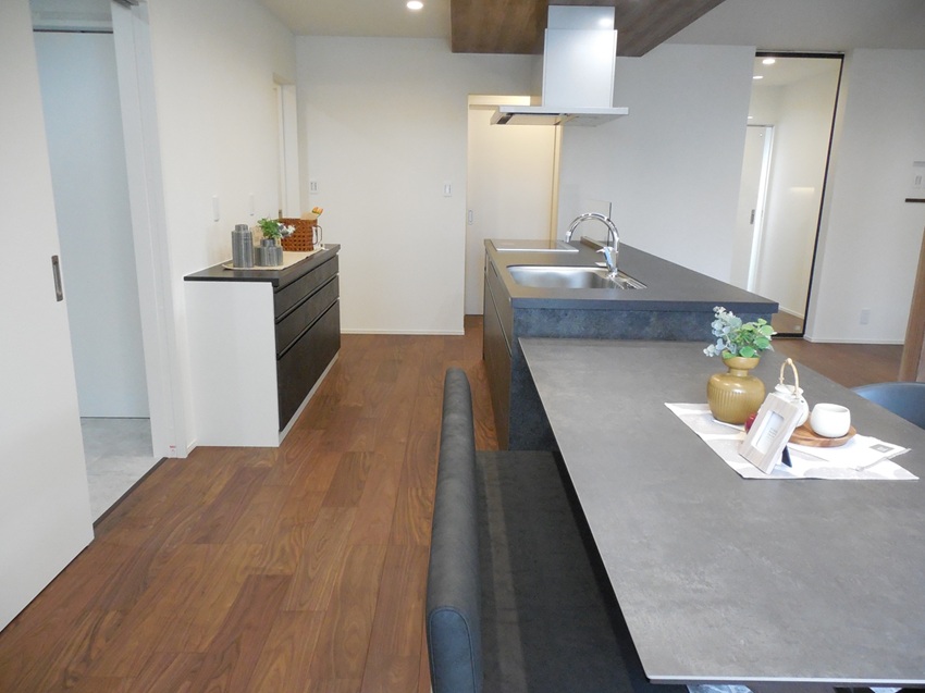 キッチンが大きく見えますし、通り抜けできるので動線としてもすごく良かったと思います。