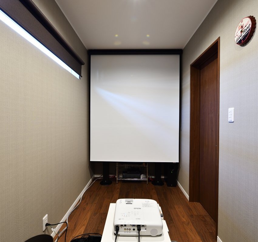 2階にはシアタールームを設け、友人との映画鑑賞も楽しみの一つです。