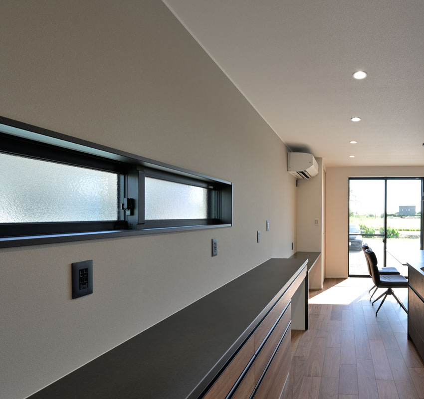 帰ってきてすぐに洗面に行けるようにしたり、洗面からキッチンにも回れるようにして、家の中をぐるっと回れる間取りにしています。