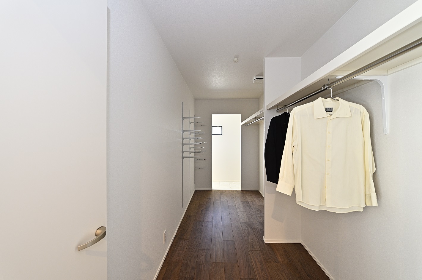 1階には大きなウォークインクローゼットを作り、家族全員分の服をいれることができます。
