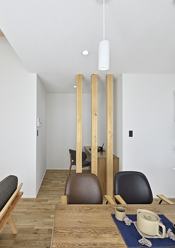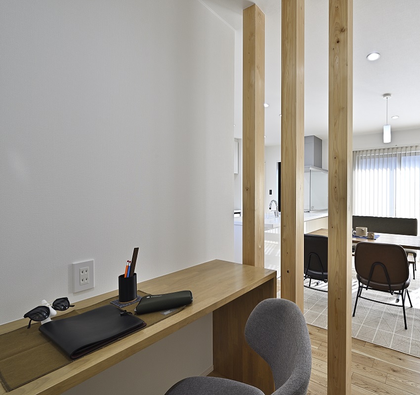 リビングと一体感を保ちながら、適度に空間を緩やかに分けることで、集中できる学習スペースとしての機能をしっかりと確保しています。