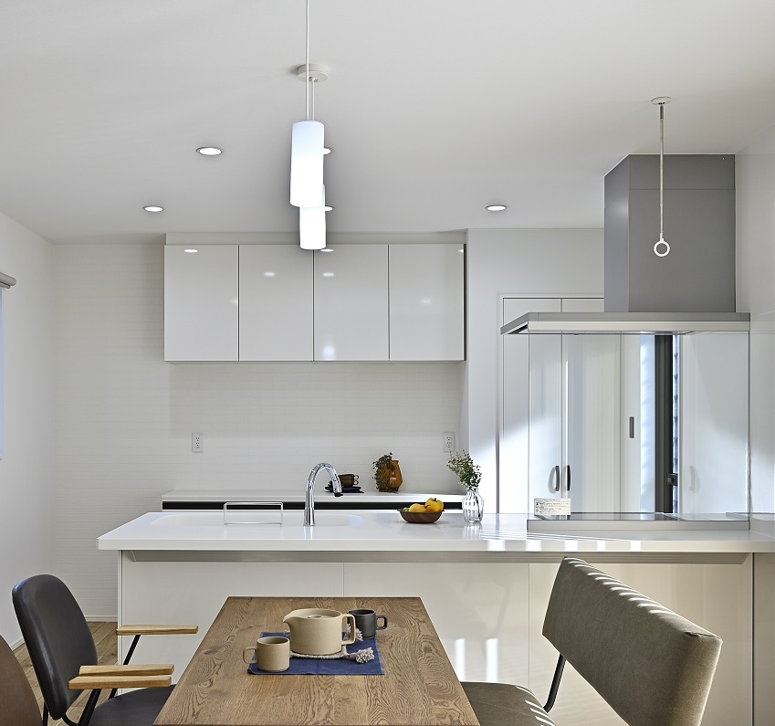 キッチン全体は、白で統一されており、清潔感にあふれ、明るく爽やかな印象を与えます。
