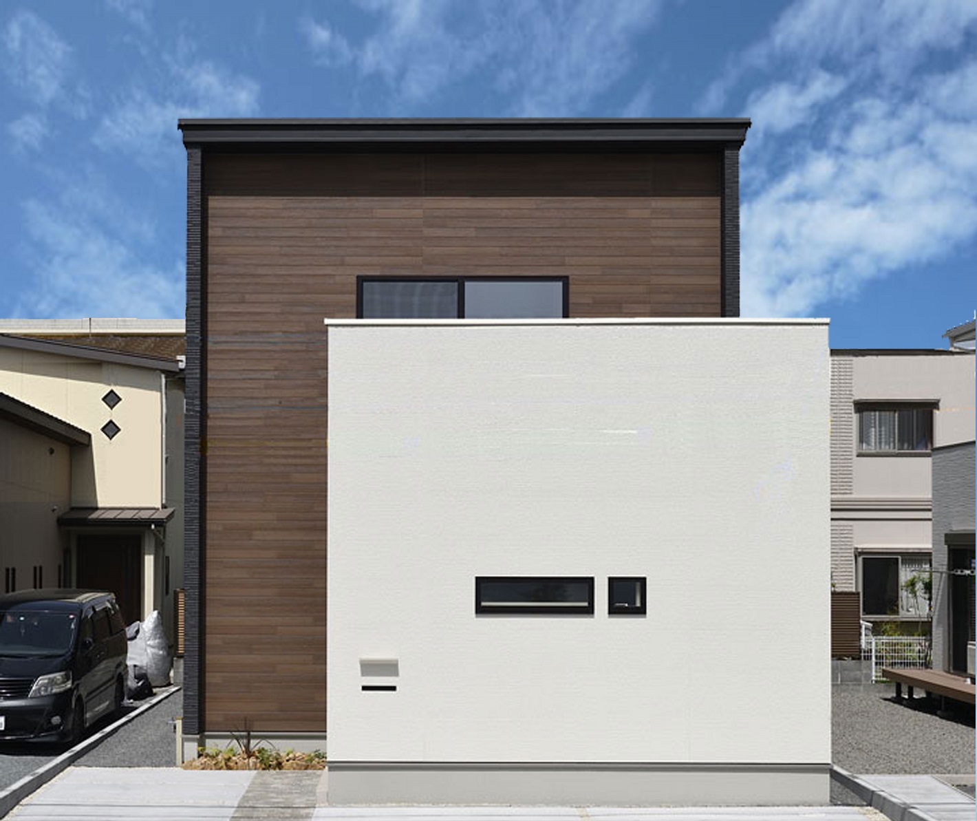 流行の玄関を正面から見えないようにするデザインも取り入れています。