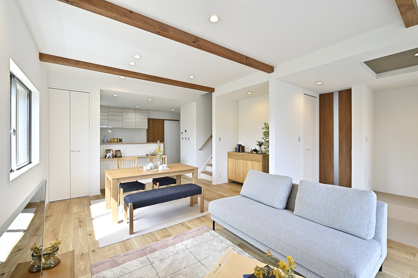 家族が自然と集まり、穏やかな時間を過ごせる、心地よいリビングが広がります。 -