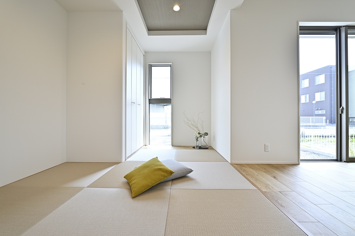 畳コーナーにはあえてドアを設けず、リビングと緩やかにつなげることで、家族がどこにいても一緒にいられるような開放的な空間を実現しています。