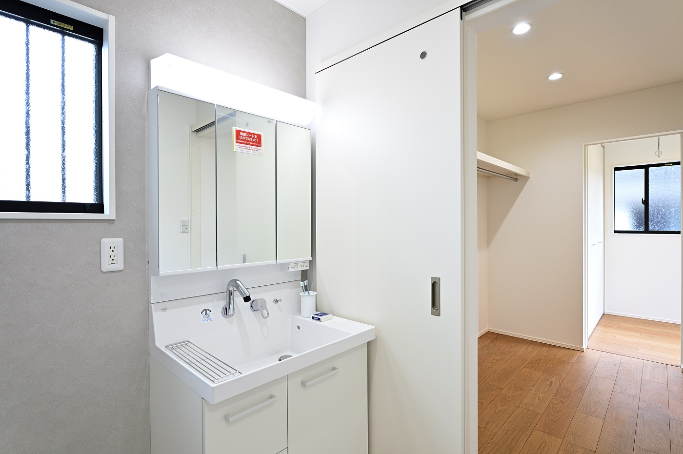 洗面室、ウォークインクローゼット、ランドリールームが並ぶ動線は、忙しい毎日を送る働くママ(パパ)にとって、大きな助けとなります。
