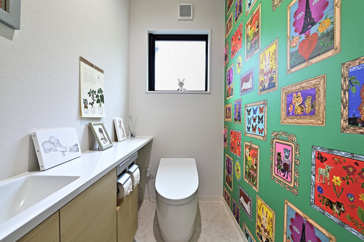 なかなか使いこなせる方が限られるアクセントクロスをトイレに採用して頂きこんなに素敵に仕上がりました。