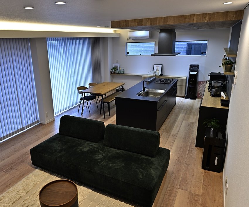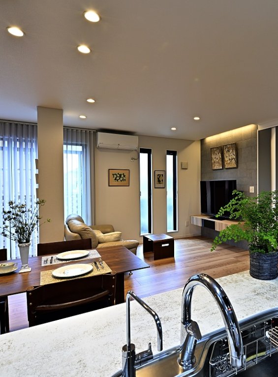くつろぎを演出するインテリアは家具や建築家照明など、お施主様のセンスが光ります。