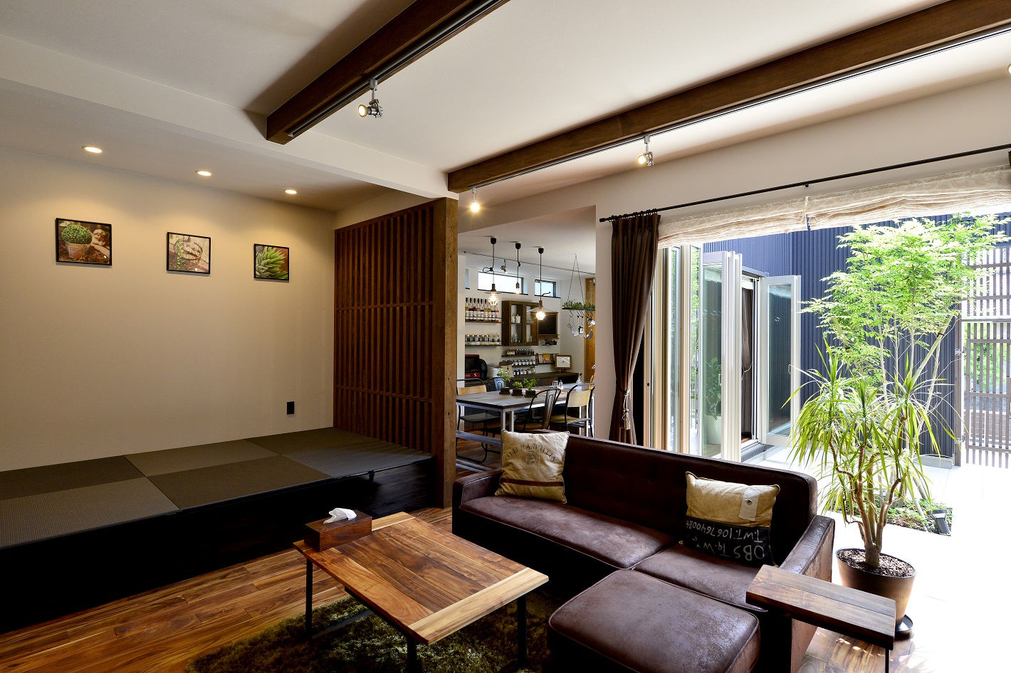 小上がりの畳コーナーには黒を採用し、シックで落ち着いた空間に。
