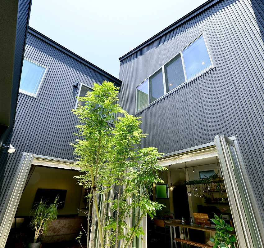 中庭を中心に、リビングとキッチン・ダイニングを配置しました。