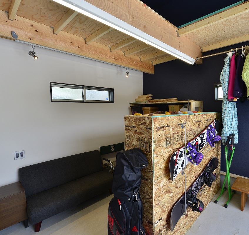 ご主人のこだわりが詰まったガレージは、単なる車の駐車スペースではなく、趣味を存分に楽しむための特別な空間。