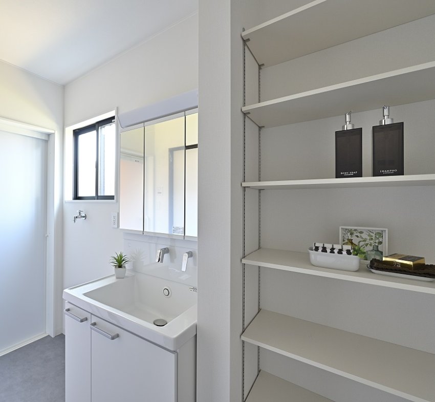 キッチンの真横に洗面を配置することにより、家事導線を短くしました。 -