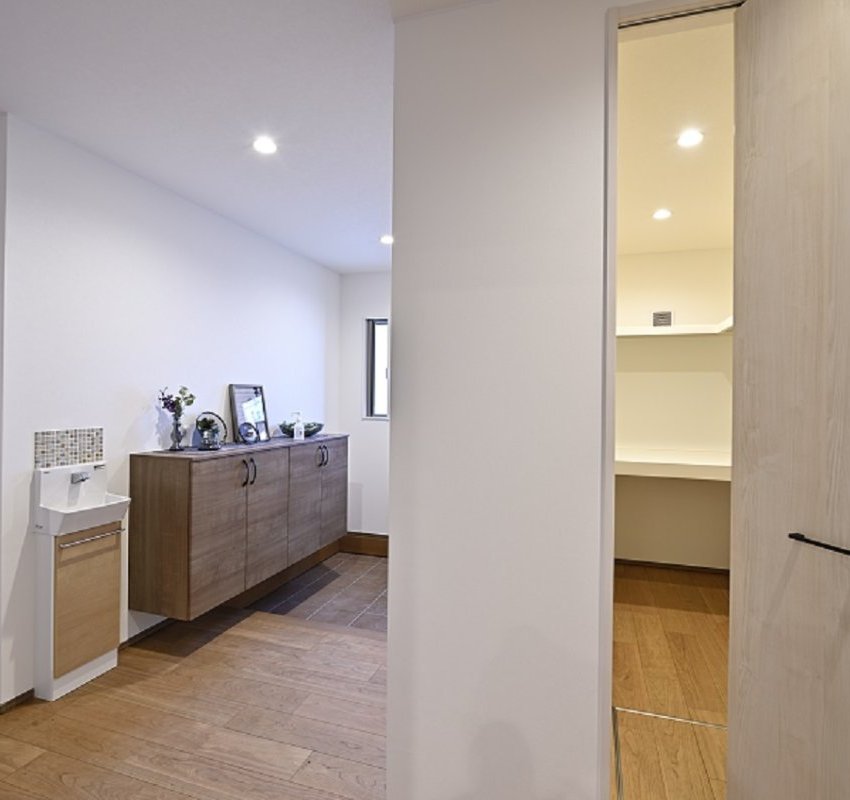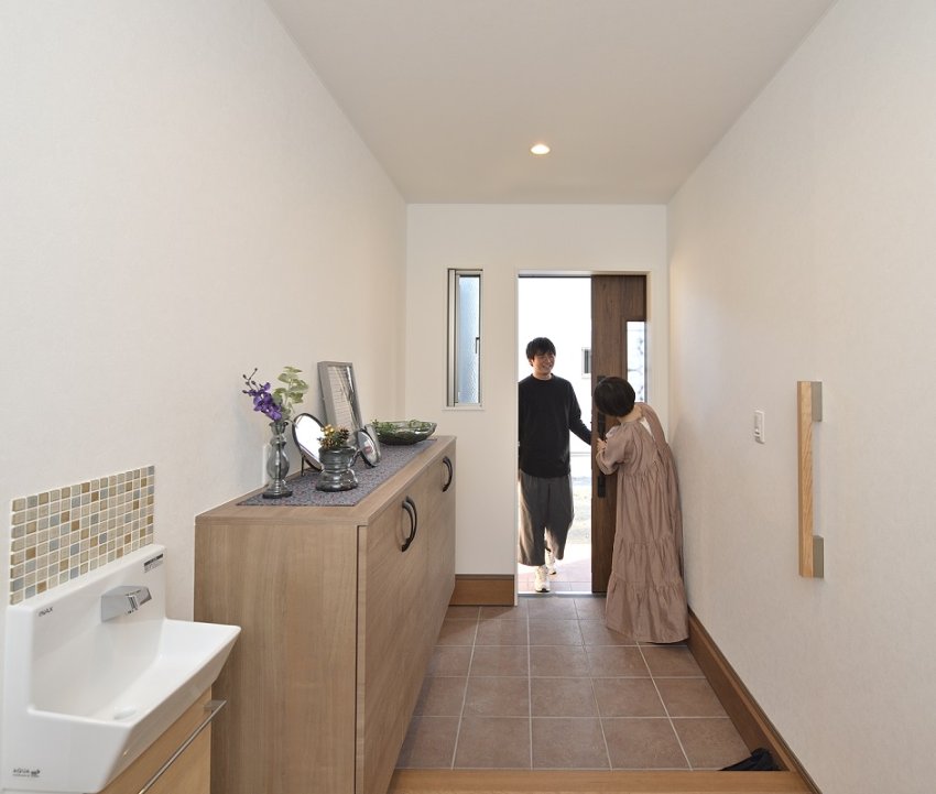 玄関ホールに洗面台があり今の時代に合った動線になっています。