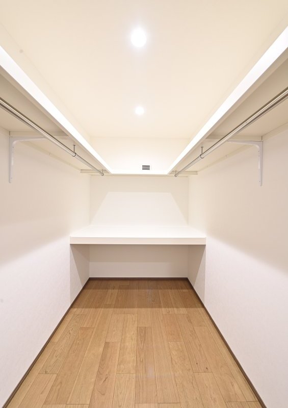 玄関近くにファミリークロークをつくることにより、コートなどもすぐに収納でき、リビングはいつもスッキリ。