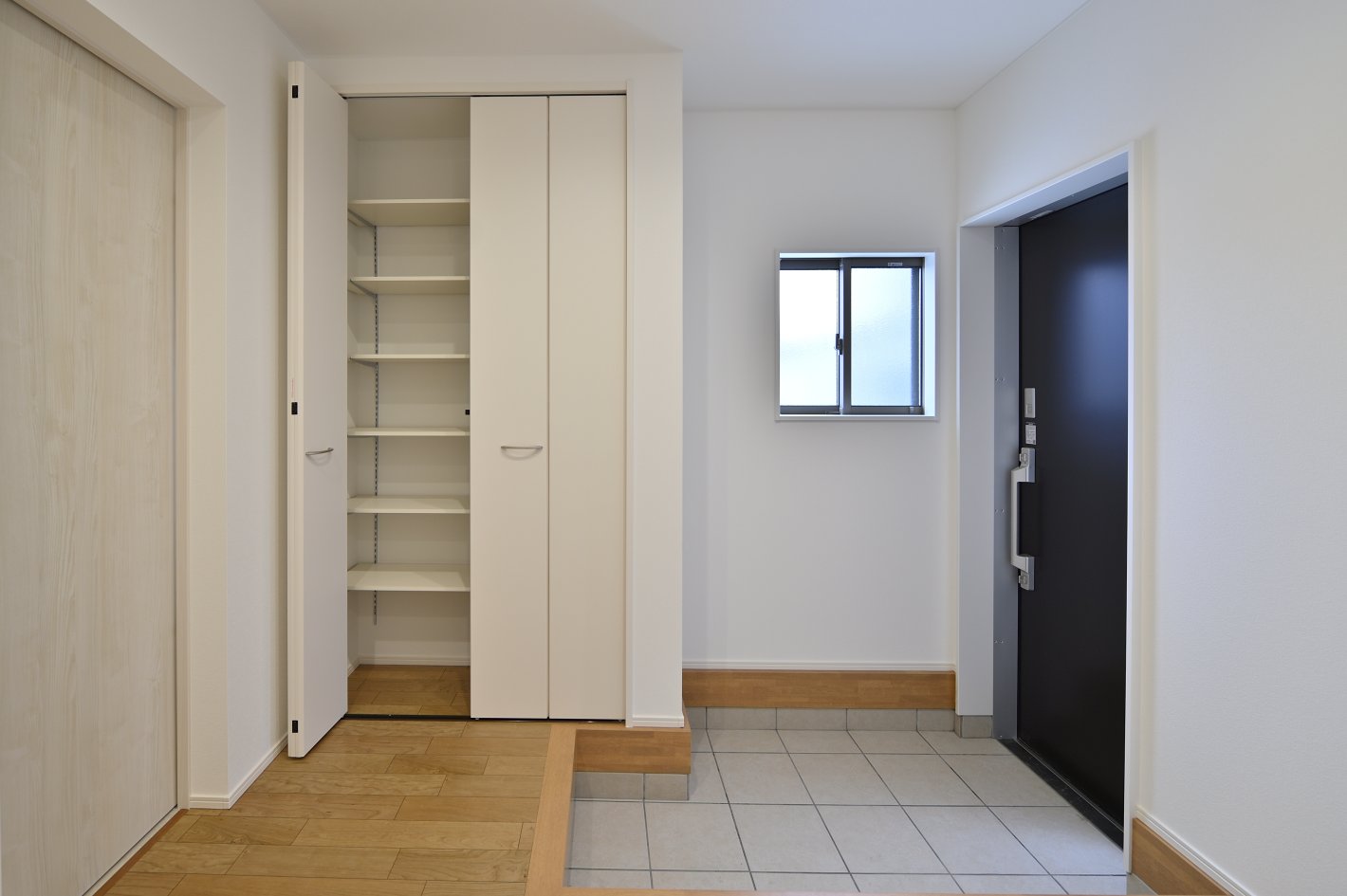 広々とした玄関ホールはお子様が座って靴を履くにも便利です。