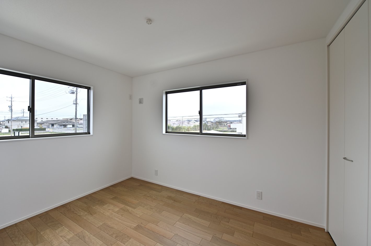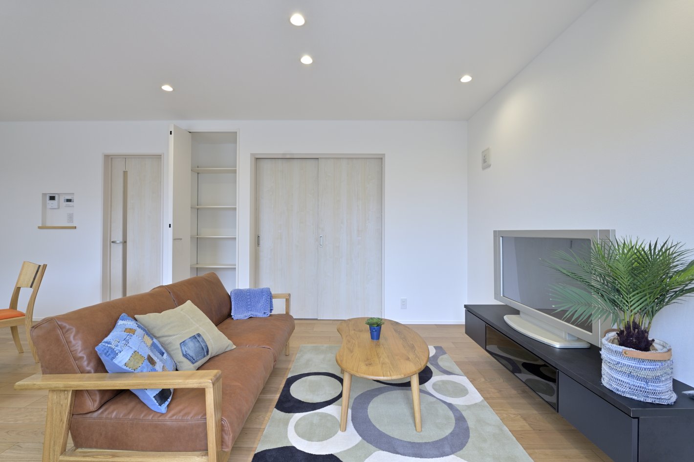 アクセントクロスを使わないシンプルな仕上げがTVボードやキッチンカラーを際立たせます。 -