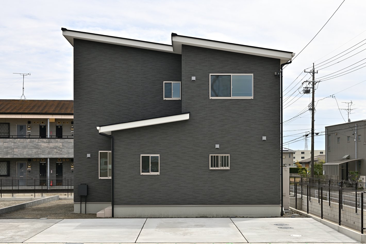 外観はグレーの落ち着いた外壁をお選びいただきました。