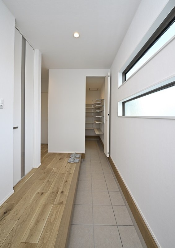 3畳ほどもある広めのシューズクロークは靴だけではなく、ベビーカーや三輪車も趣味のものも楽々収納。