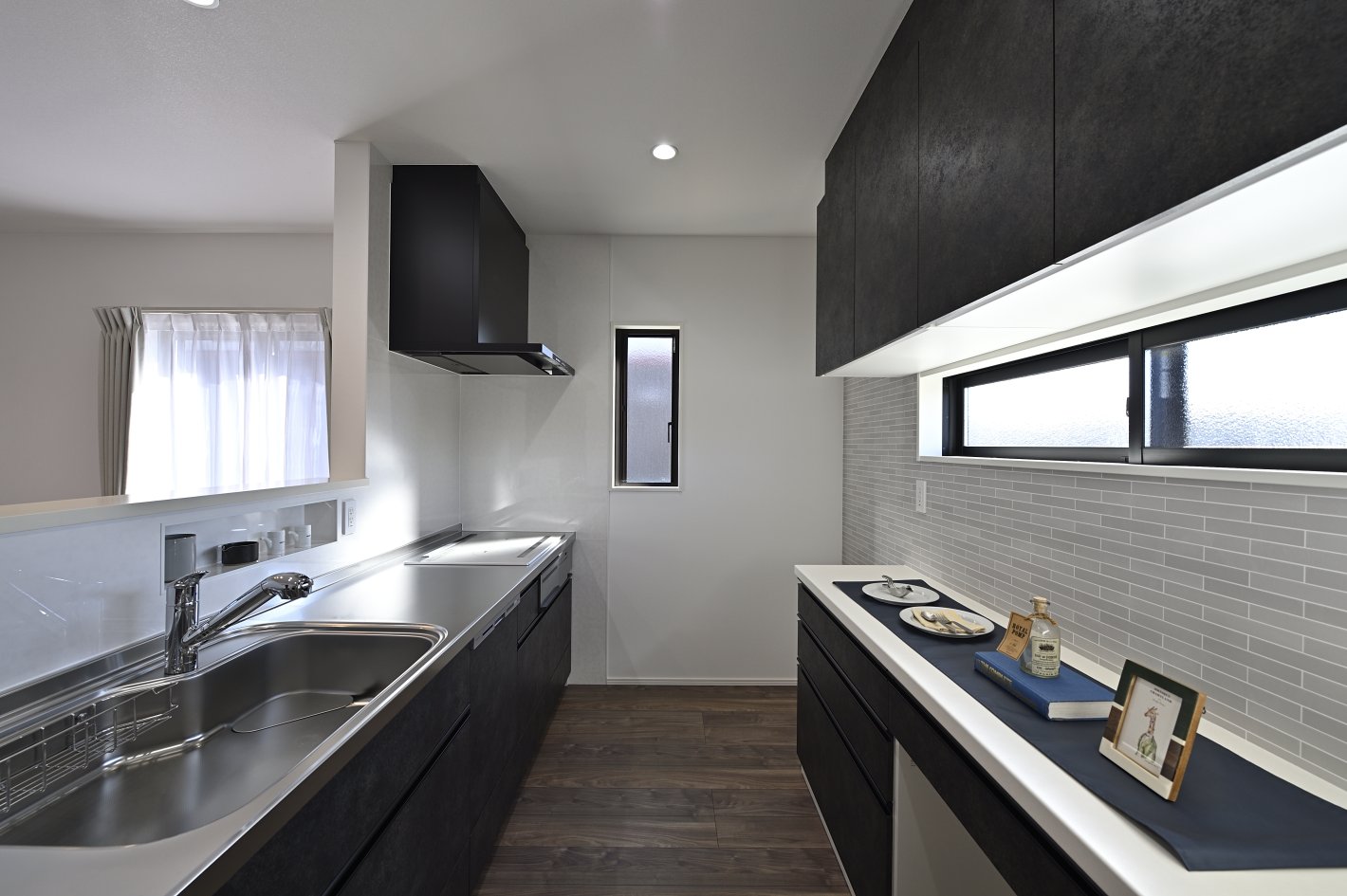 スタイリッシュなキッチンは、かっこいいリビング空間を演出しています。