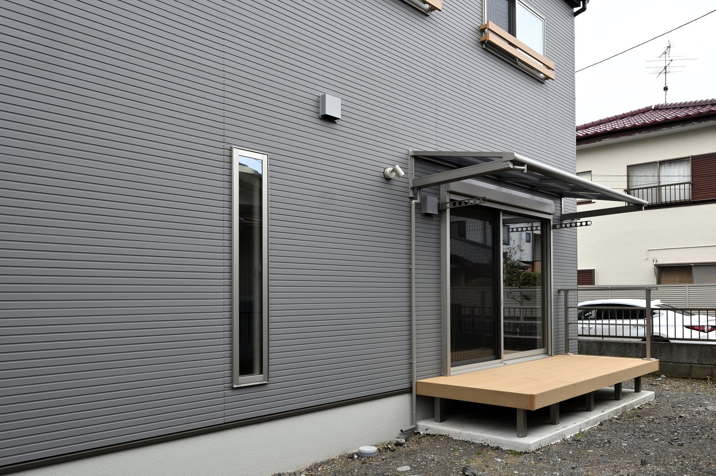 天気を気にせず洗濯物を干す事の出来るサンルーフと広々ウッドデッキを設けました。 -