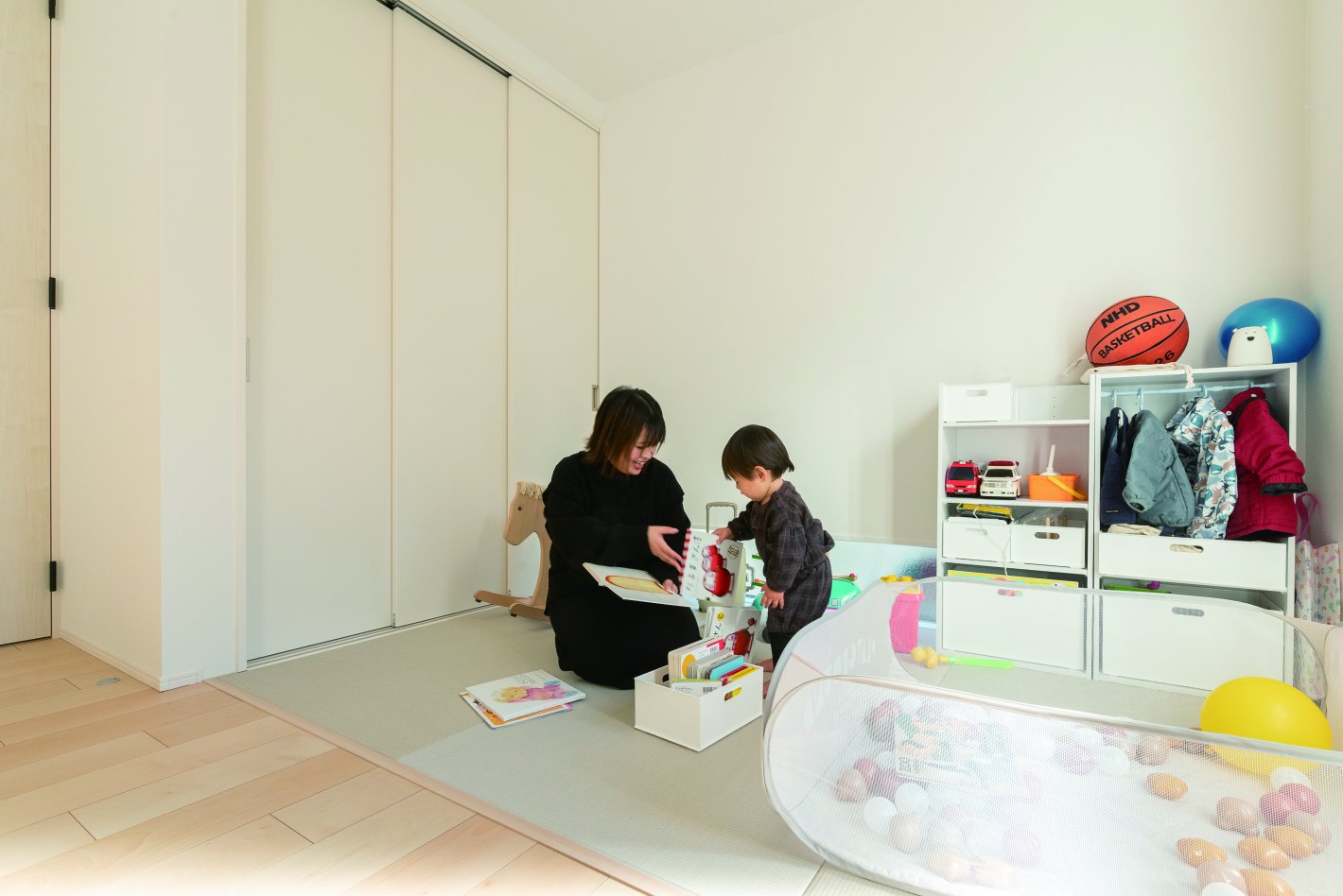 「おもちゃや絵本はここにまとまっていればOK」とすることで、LDKのキレイが保たれ、気持ちにゆとりが生まれました。 -